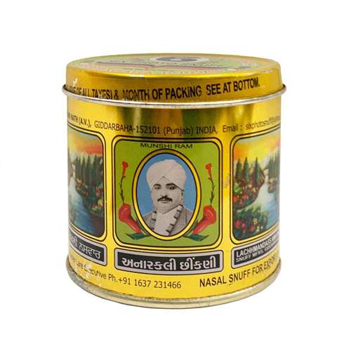 A rose-flavored Indian snuff inspired by the opulence of the Punjabi Mughal era. This finely milled, dark brown snuff delivers a sweet, floral sensation, complemented by a refreshing touch of menthol. The blend is complex, with notes of rose, pomegranate blossom, jasmine, vanilla, sandalwood, and subtle hints of citrus and spice, offering a multi-layered aromatic profile. The result is a balanced, aromatic experience with moderate nicotine, ideal for those seeking a sophisticated floral and fruity snuff with a cooling finish